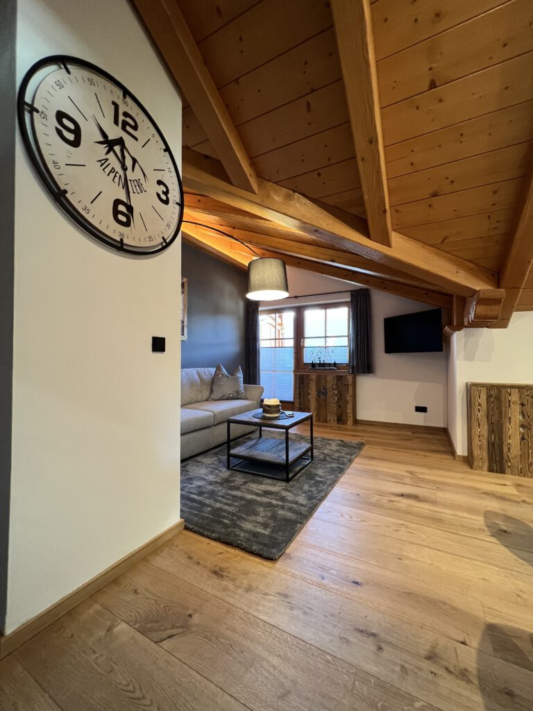 Unsere helle, im modernen Stil eingerichtete Ferienwohnung „Broathack“ im Dachgeschoß mit folgenden Bereichen: